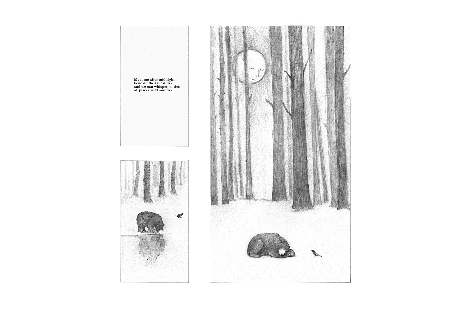 ‘meet me after midnight beneath the tallest tree and we can whisper stories of places wild and free’